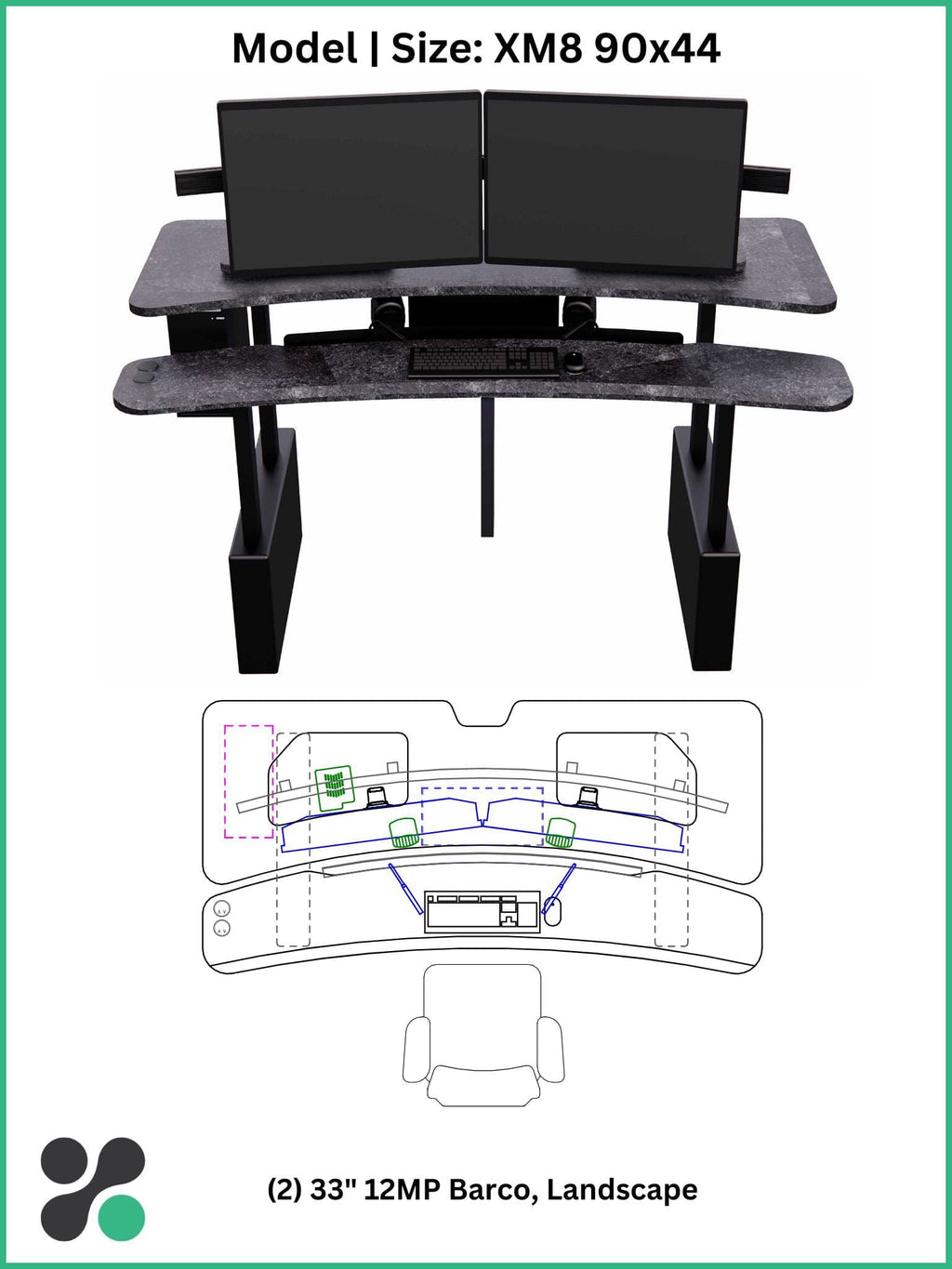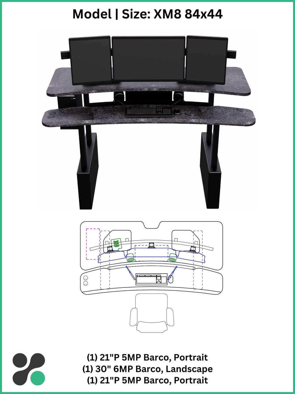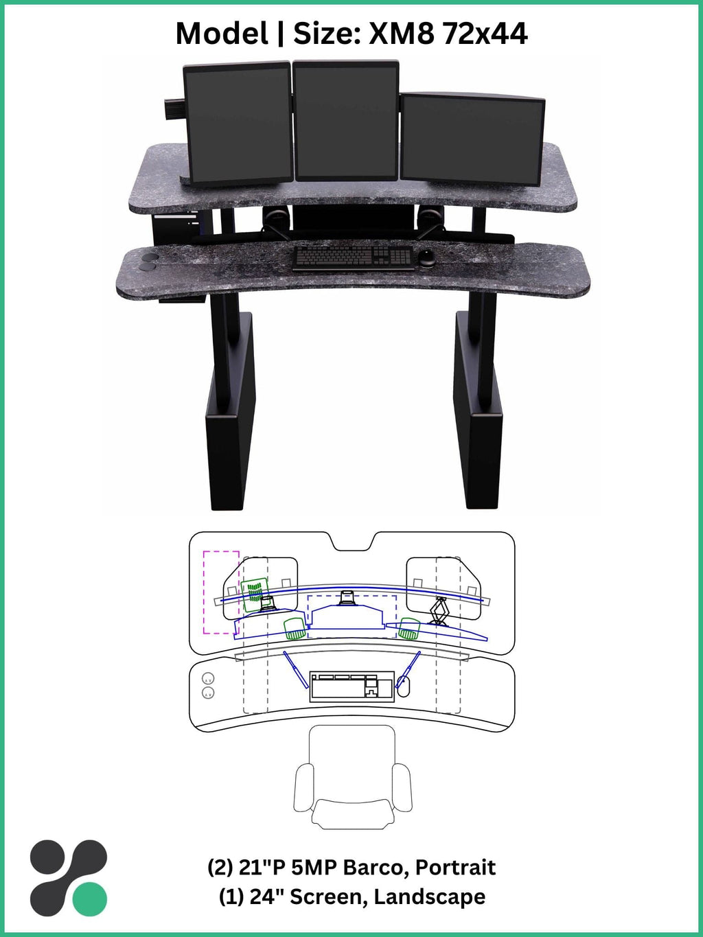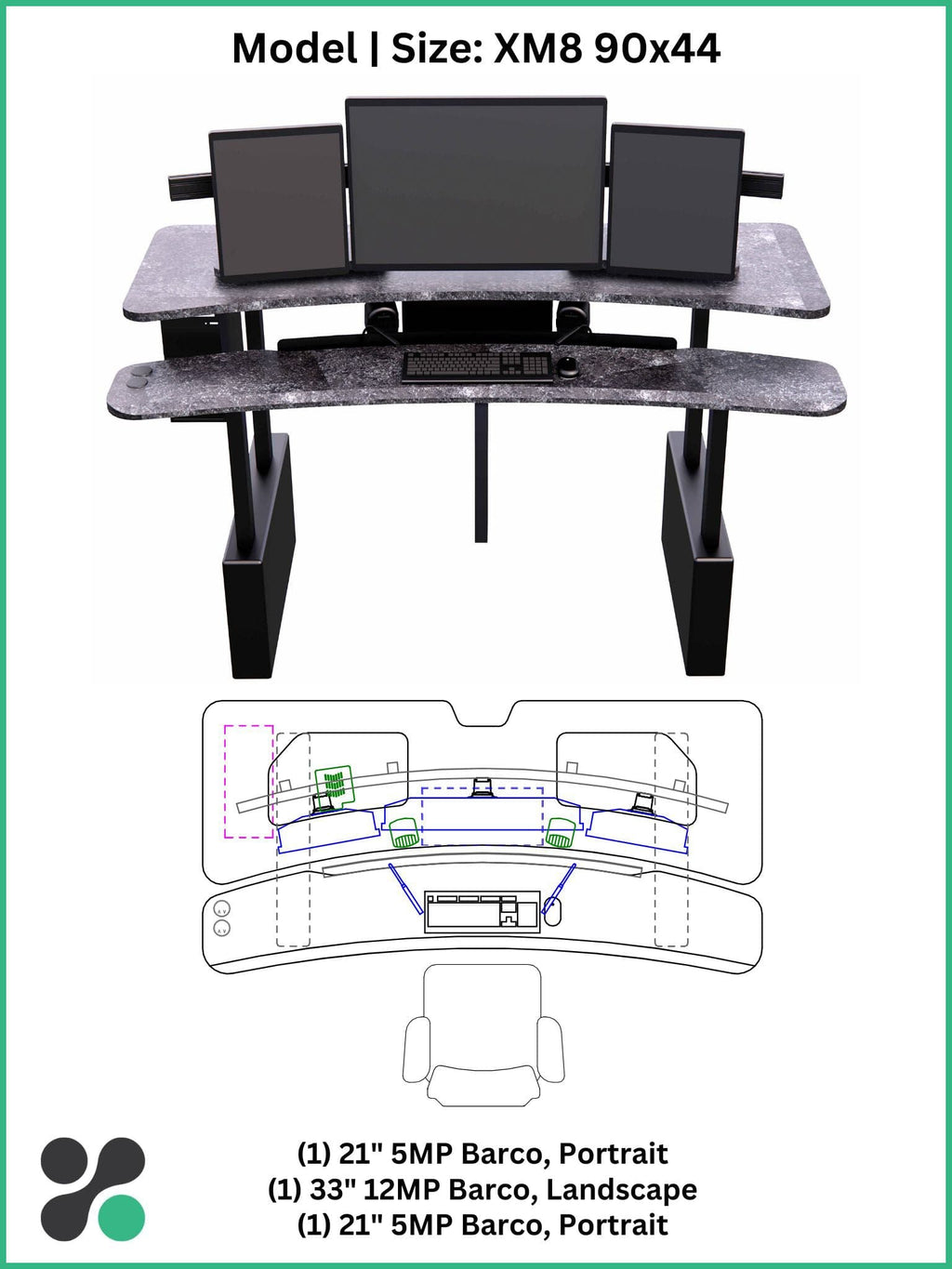 The configuration of your diagnostic and support monitors will determine the needed mounts and desk size. Scroll right for popular setup ideas we've seen from our clients.