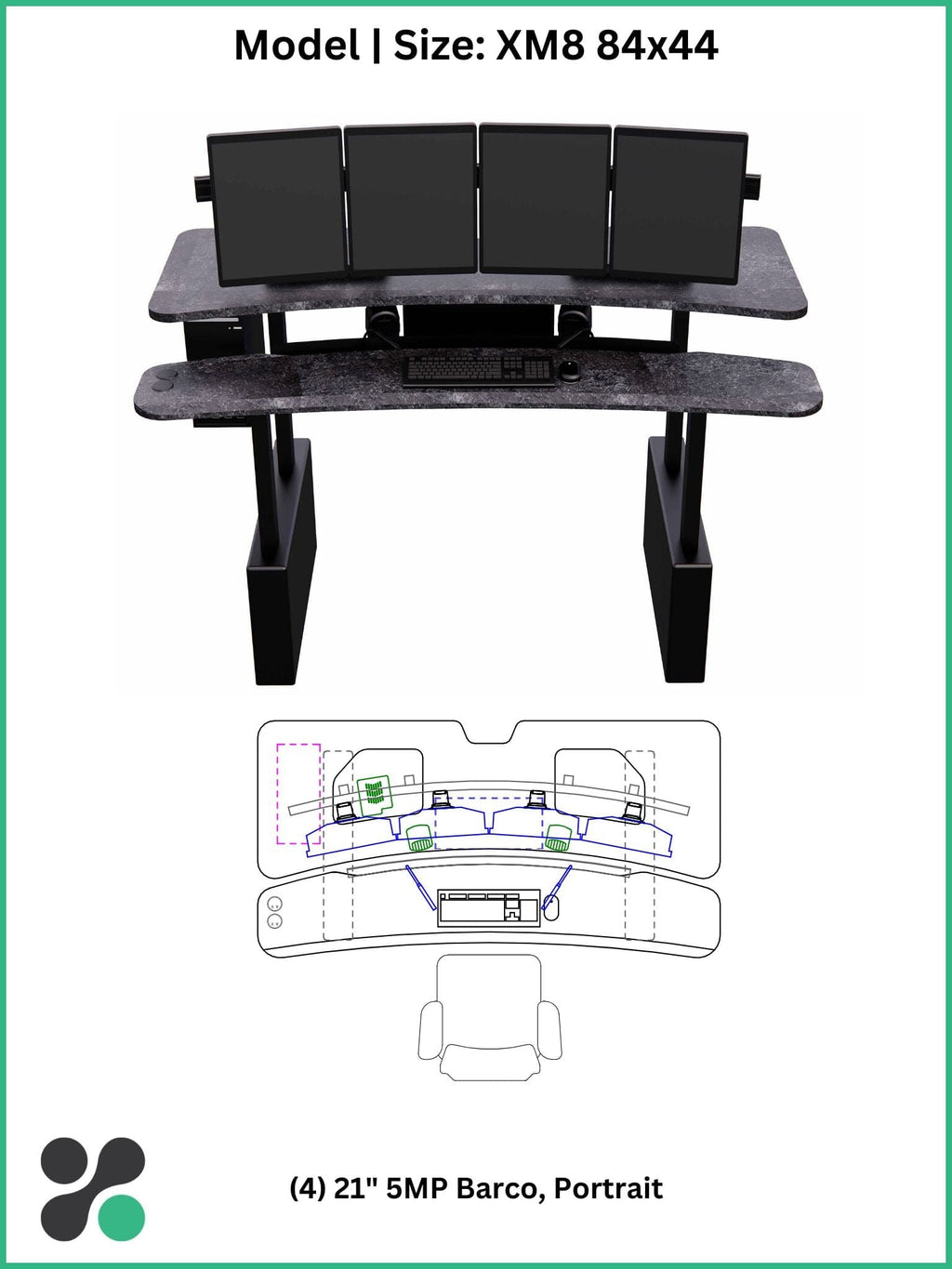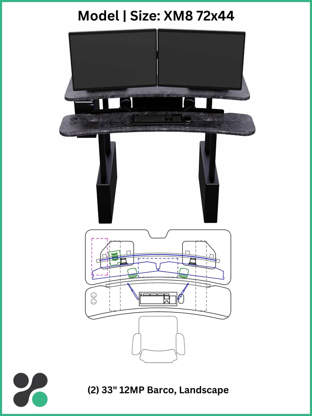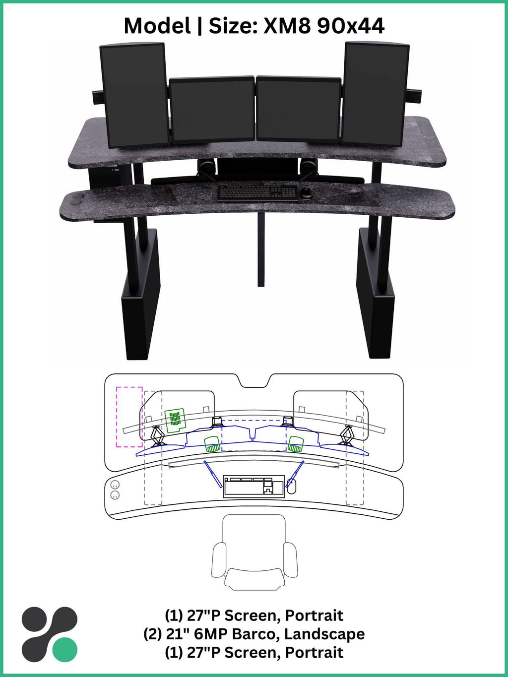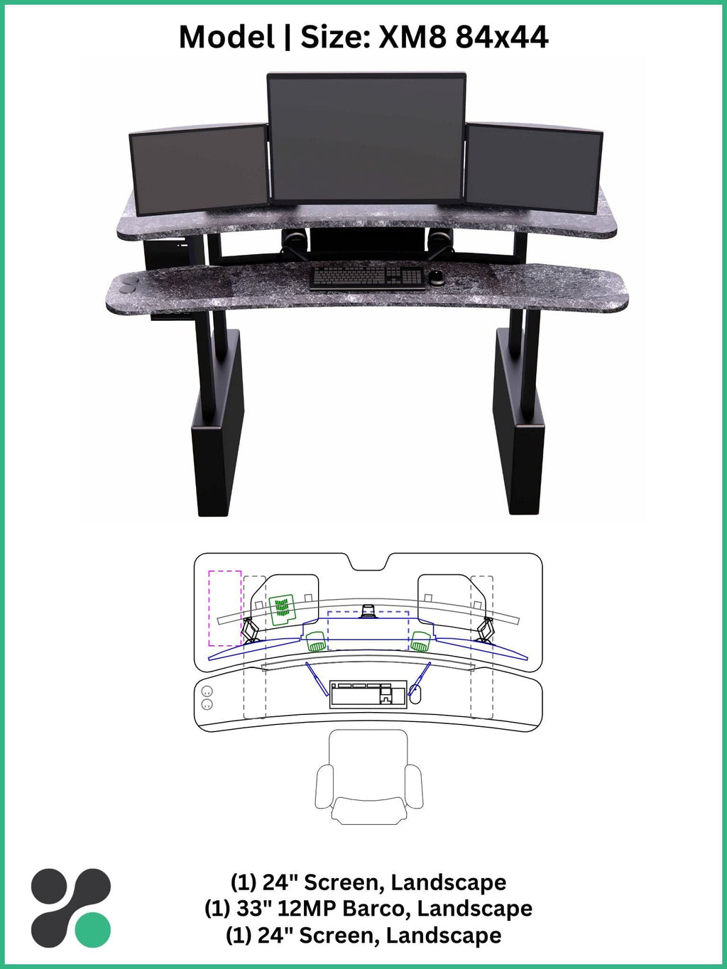 The configuration of your diagnostic and support monitors will determine the needed mounts and desk size. Scroll right for popular setup ideas we've seen from our clients.