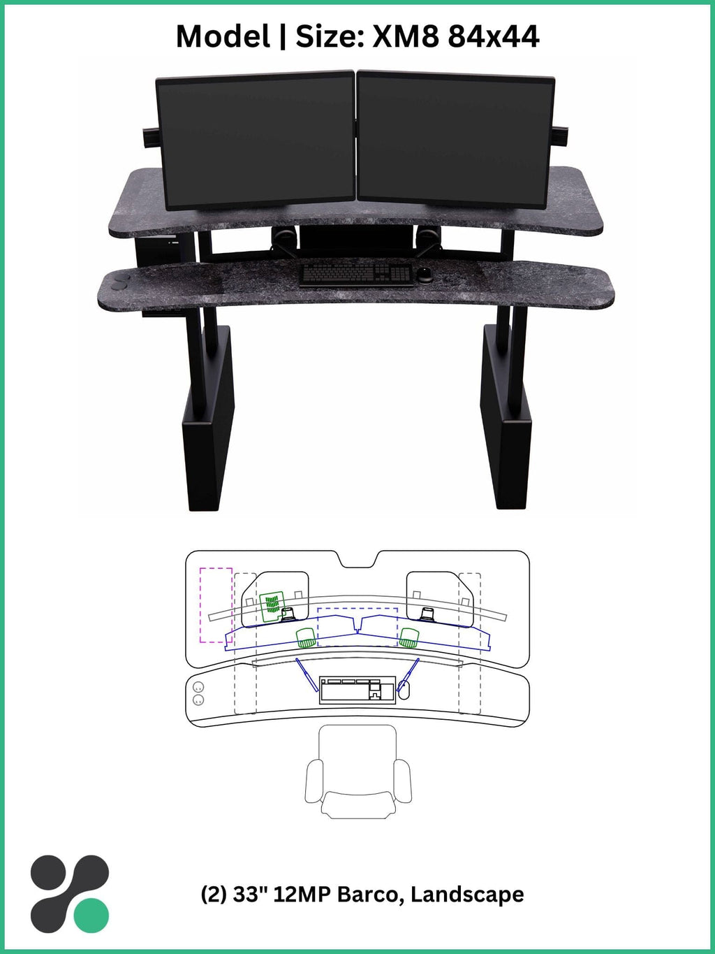The XM8's dual surfaces are supported with adjustable columns for rock solid stability at your perfect ergonomic position.