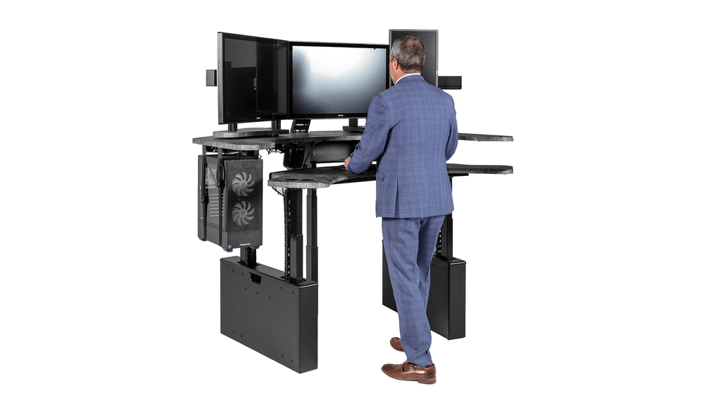 - Our desks feature sit-to-stand functionality in accordance with the ANSI-HFES ergonomic standard and we have corner, straight, dual-surface, and single-surface desks to fit anyone’s exact needs.